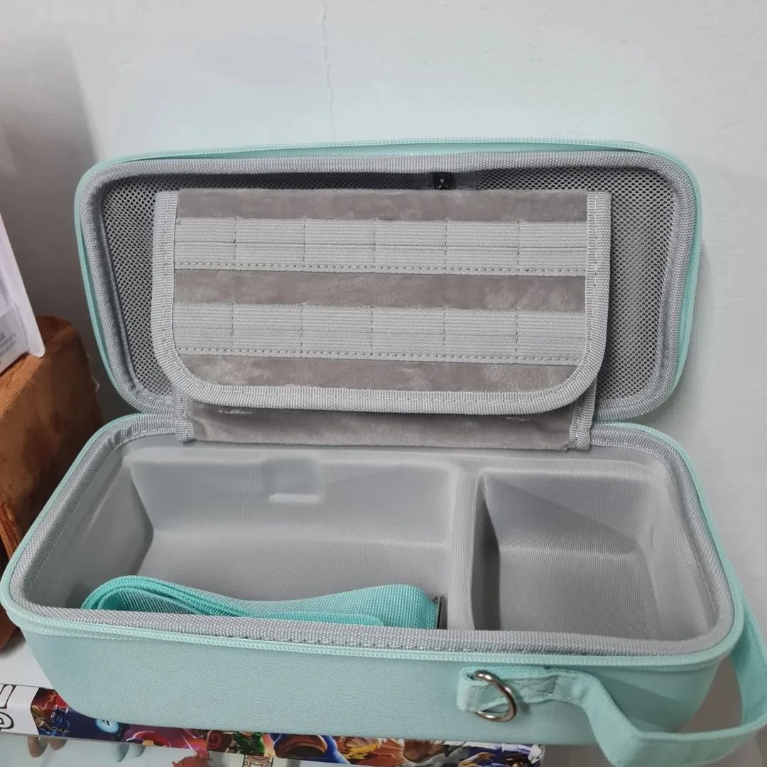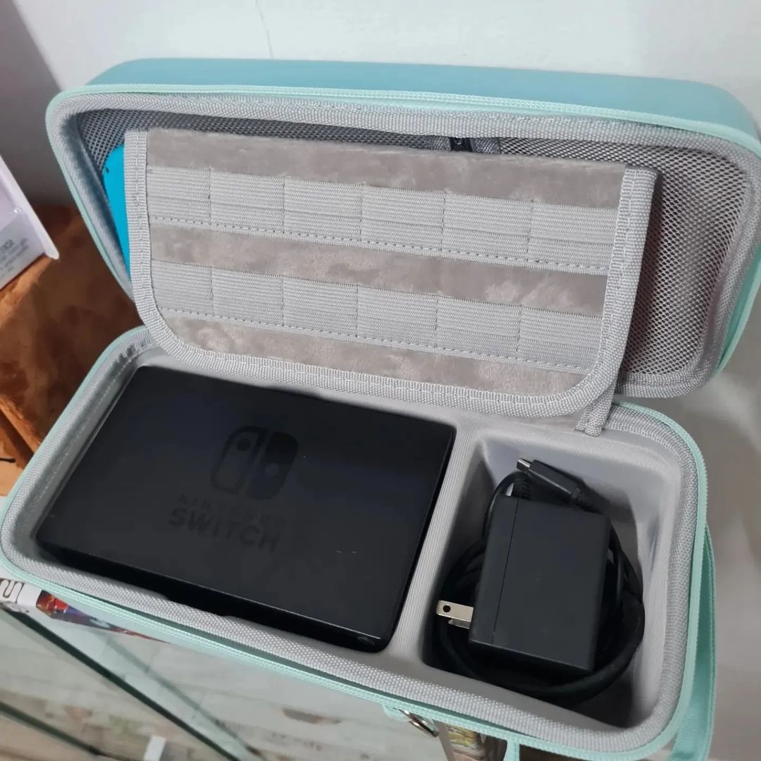 - Espacio para consola, joycons, juegos, pro control o dock, cargador, audifonos y joycons extras.