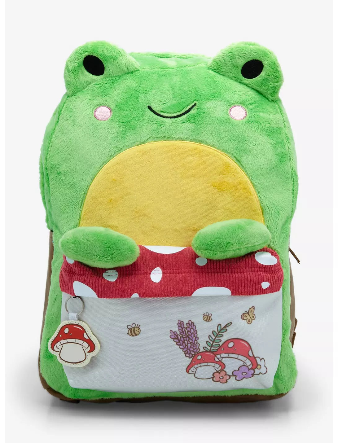 ¡Vaya a la escuela con la mochila cottagecore perfecta! Cuenta con una figura de rana peluda con ojos y manos en 3D, además de un bolsillo frontal con cremallera en forma de hongo. Incluye un tirador de cremallera frontal tipo hongo, espalda y correas acolchadas, bolsillos laterales y un bolsillo interior para computadora portátil.