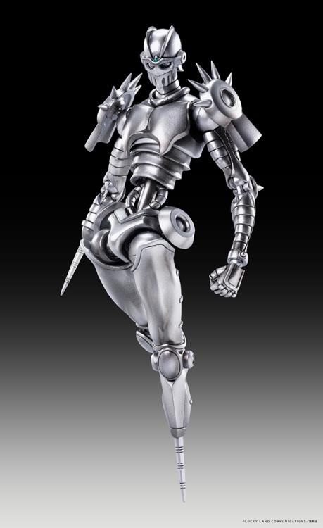 ¡Cada vez que Jean Polnaroff se mete en un aprieto, gira su Stand para sacarlo del problema! De la línea Super Action Estatua viene una nueva incorporación que realmente agregará algo de brillo a tu colección: ¡el Silver Chariot revestido de armadura! Este Stand está inspirado en su aparición en el exitoso anime y viene equipado con su característico estoque.