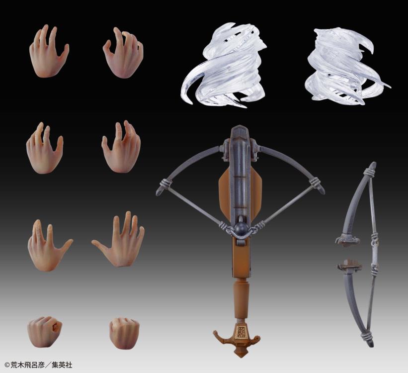 Es increíblemente articulable y viene con su ballesta en posición amartillada y no amartillada, una cabeza ciega adicional con el cuerno de bisturí de viento en la frente, dos partes de efectos de viento y ocho manos intercambiables. También viene con un soporte para posar con un brazo articulado; ¡Es natural que un maestro del viento pueda volar!