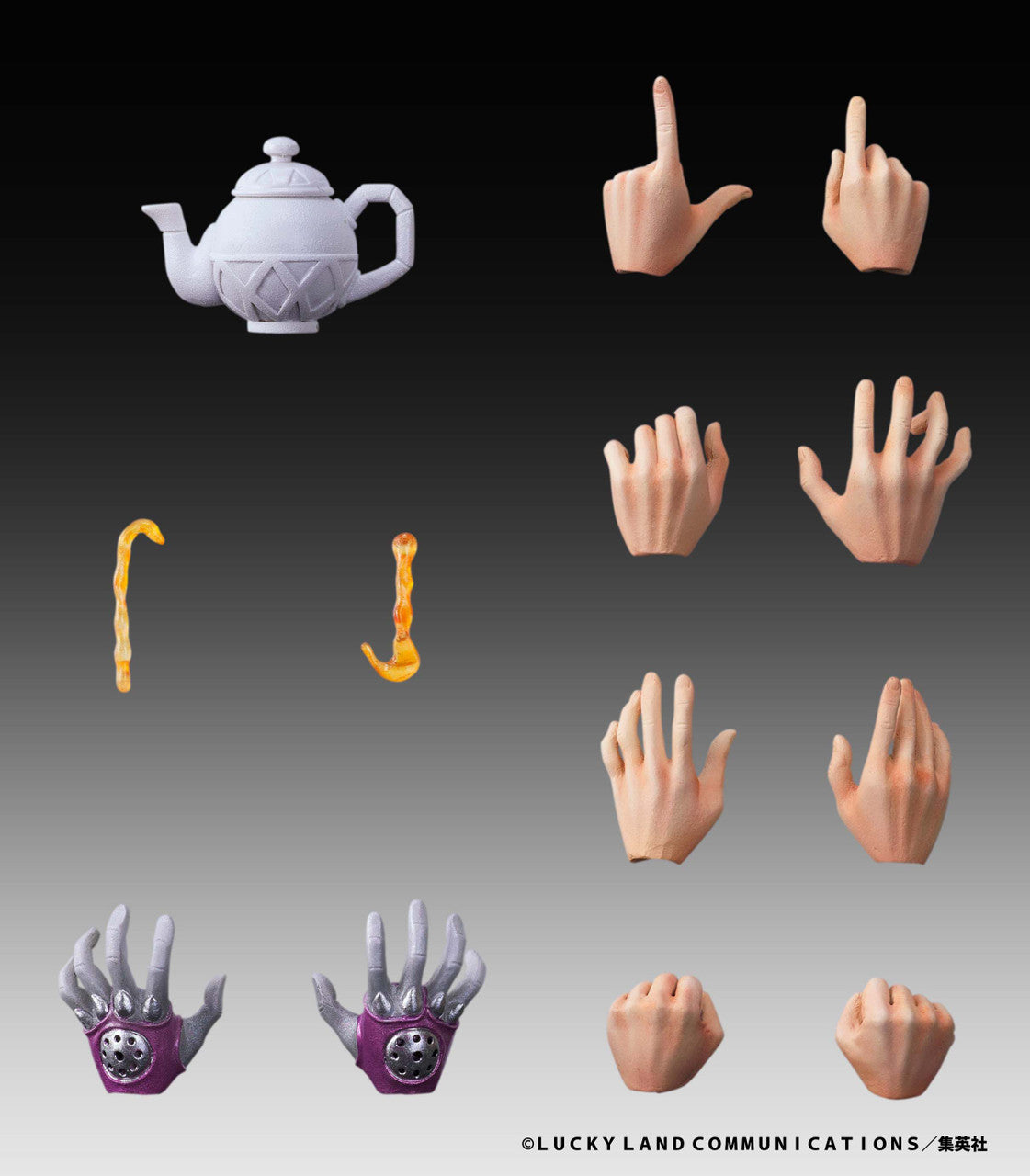 Esta figura articulada te permite exhibirlo en cualquier pose que desees; ¡Incluso puedes recrear la famosa escena del "té" con las piezas de té incluidas! Coge su Stand Moody Jazz para acompañarlo (se vende por separado) y crear las mejores escenas de batalla.