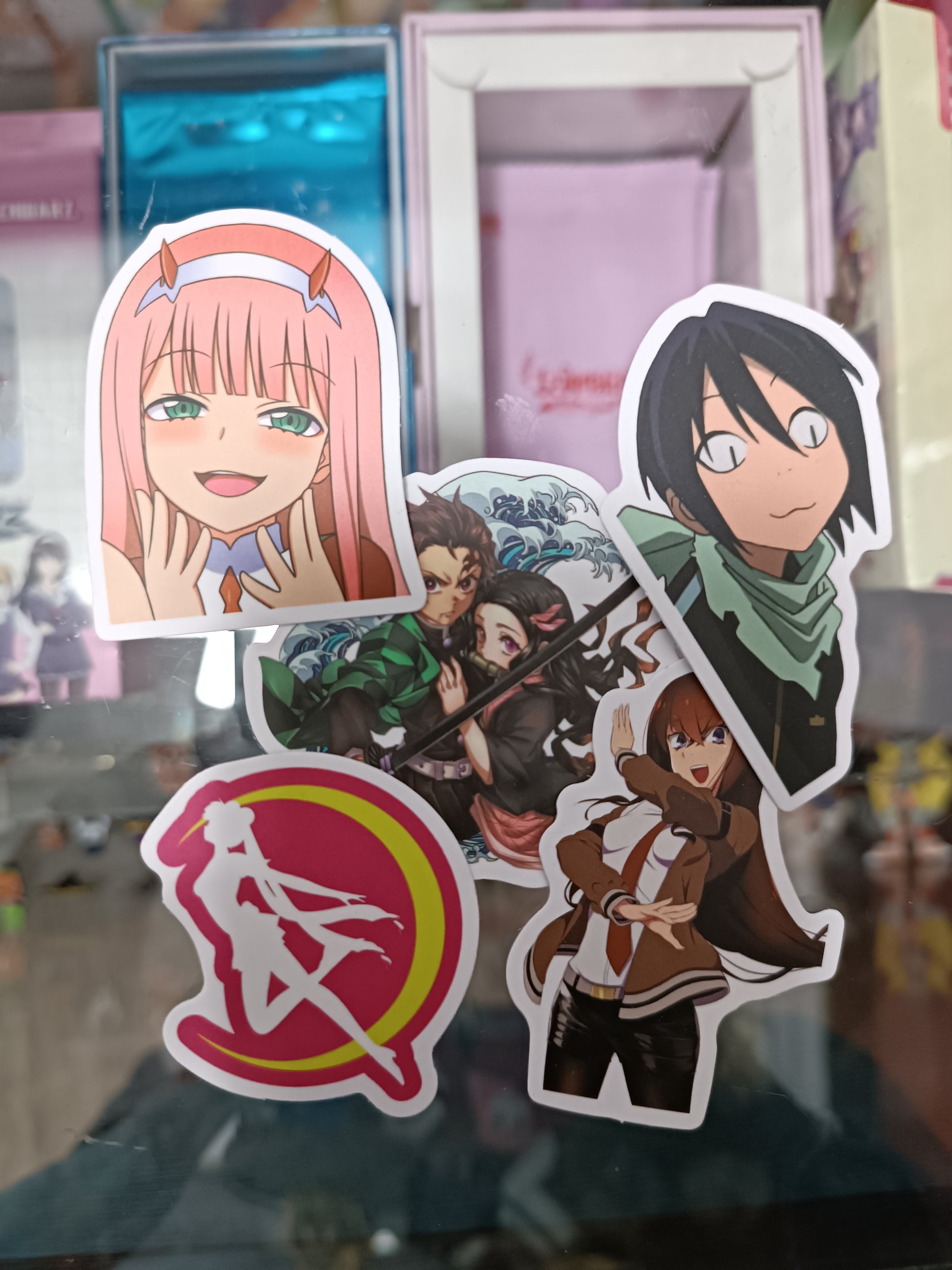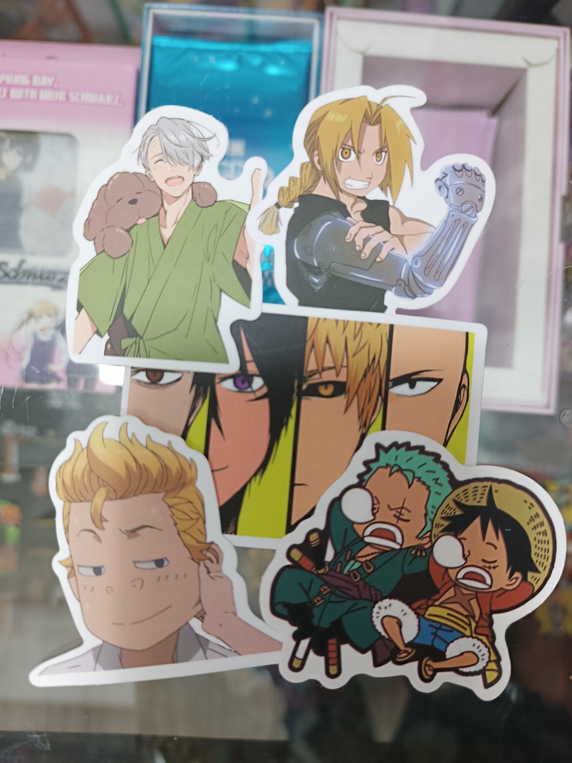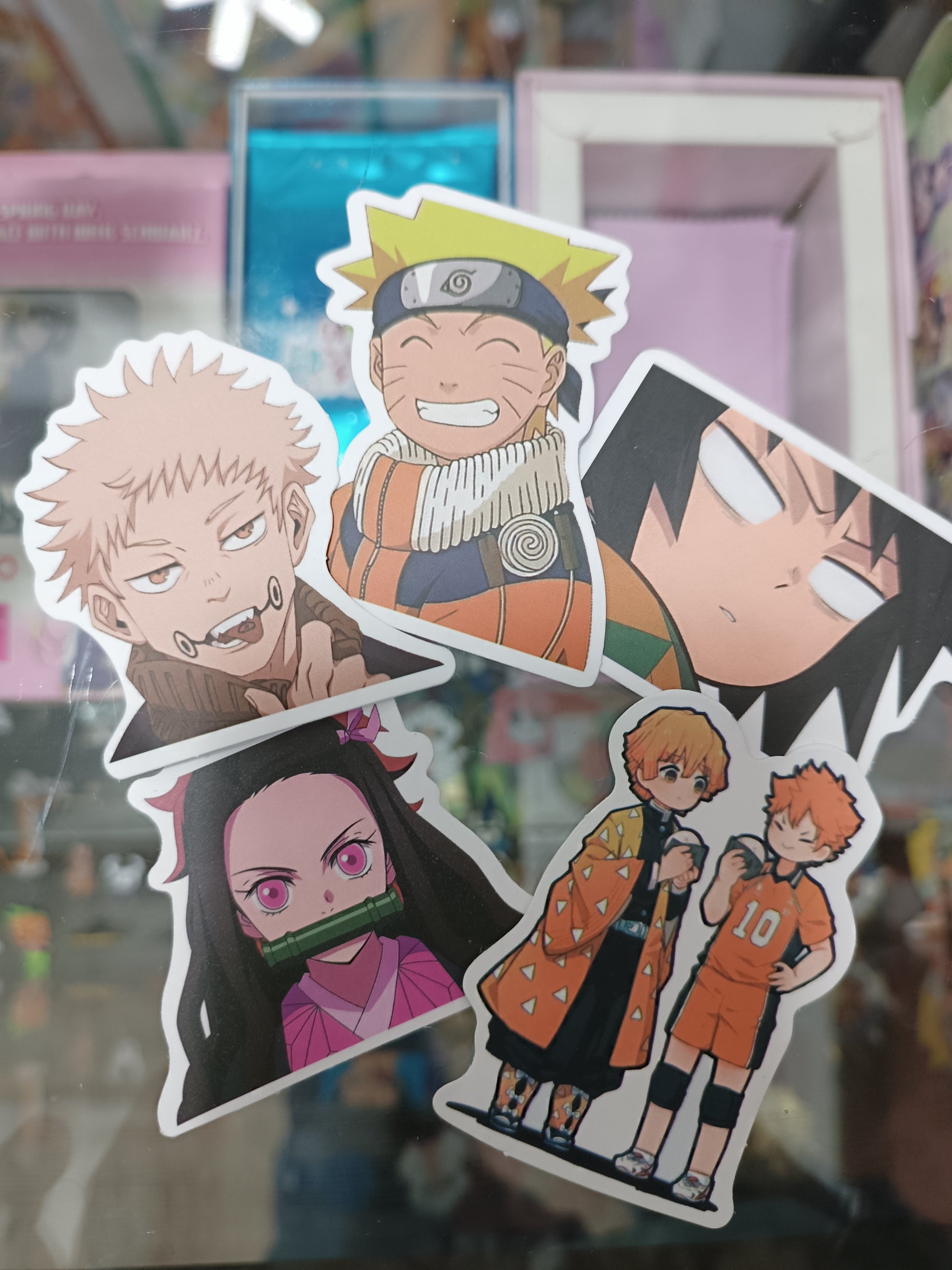 Paquete de 5 Stickers de anime al Azar, excelente calidad y resistente al agua.