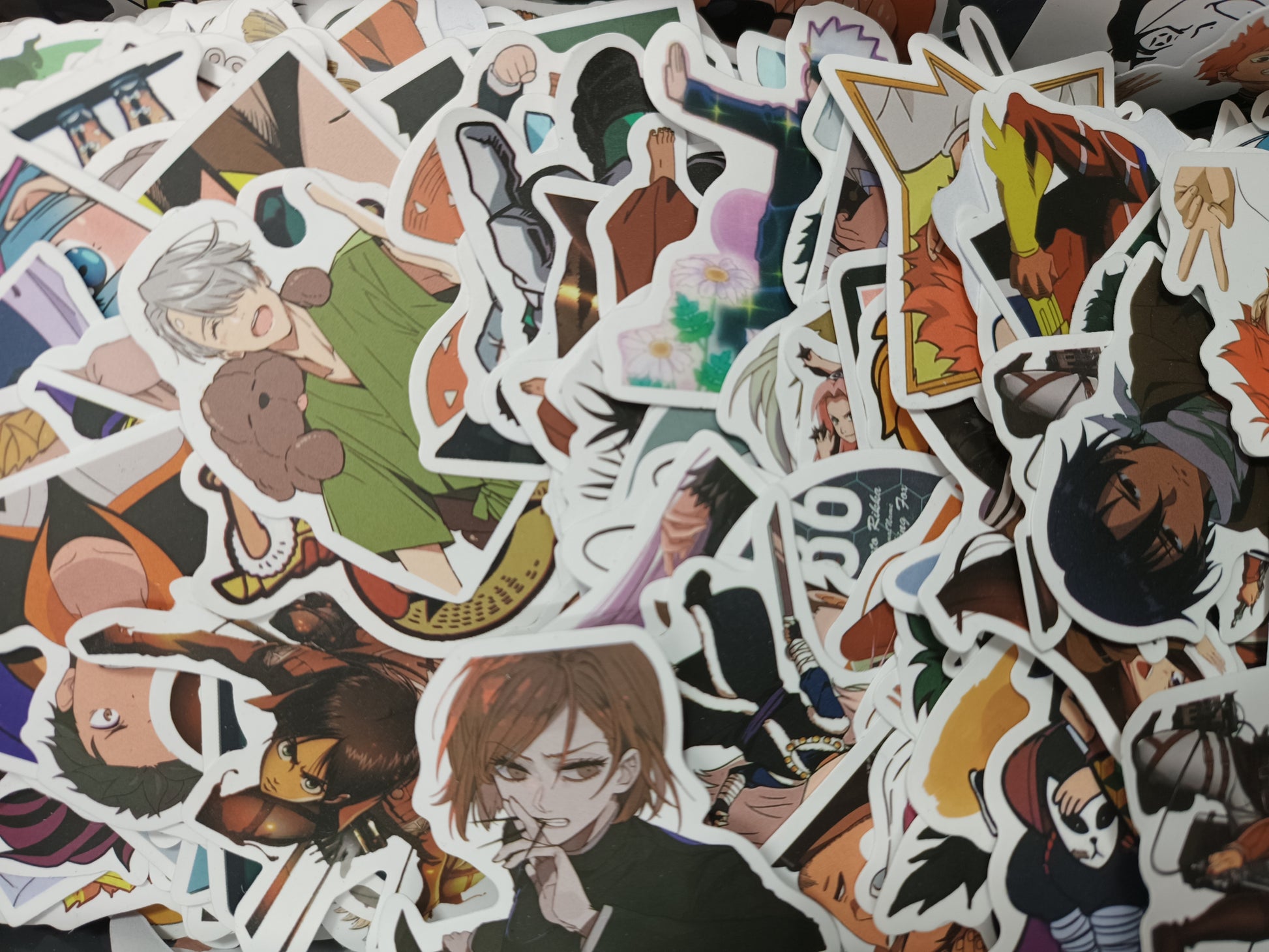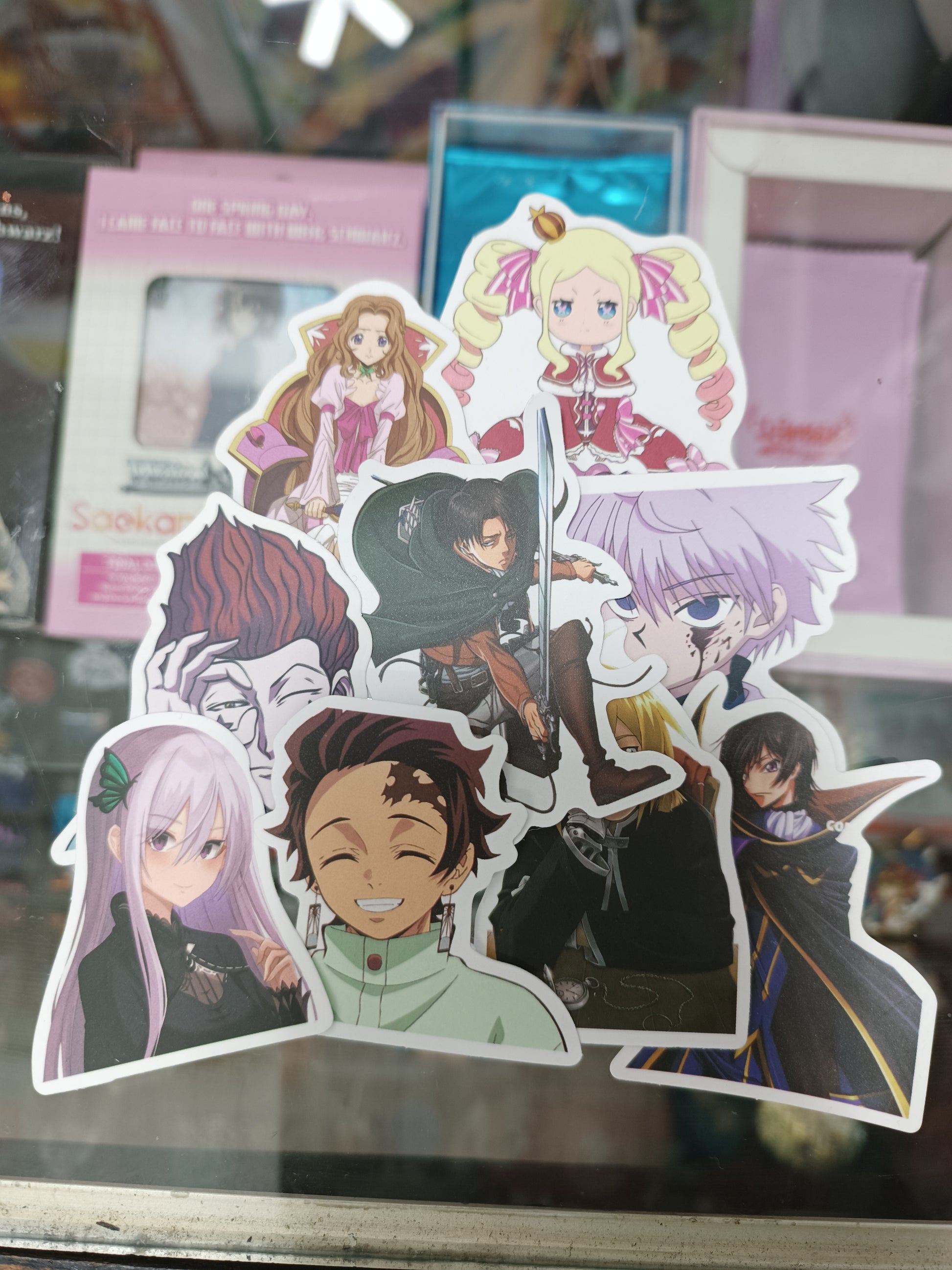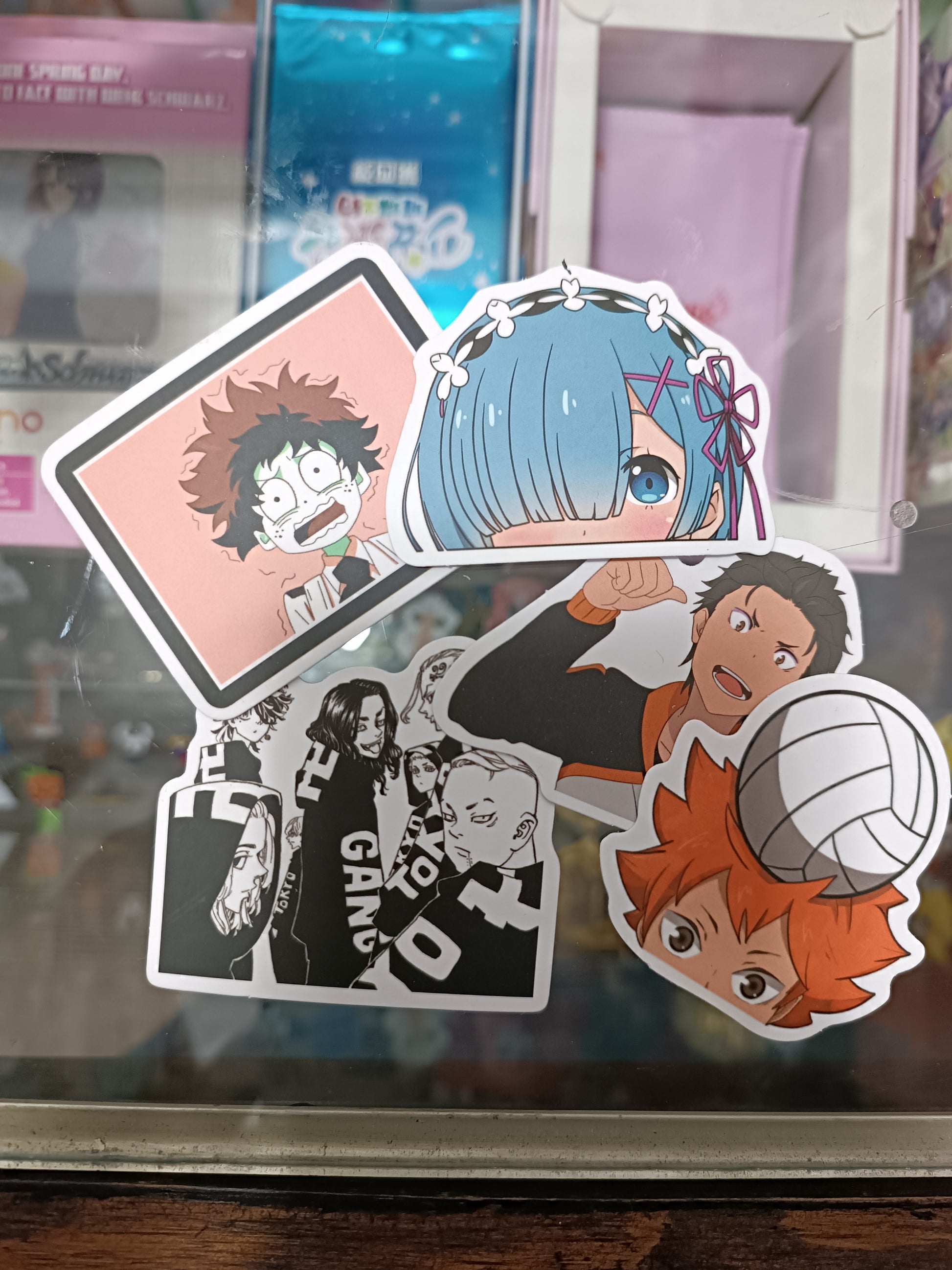 Paquete de 5 Stickers de anime al Azar, excelente calidad y resistente al agua.
