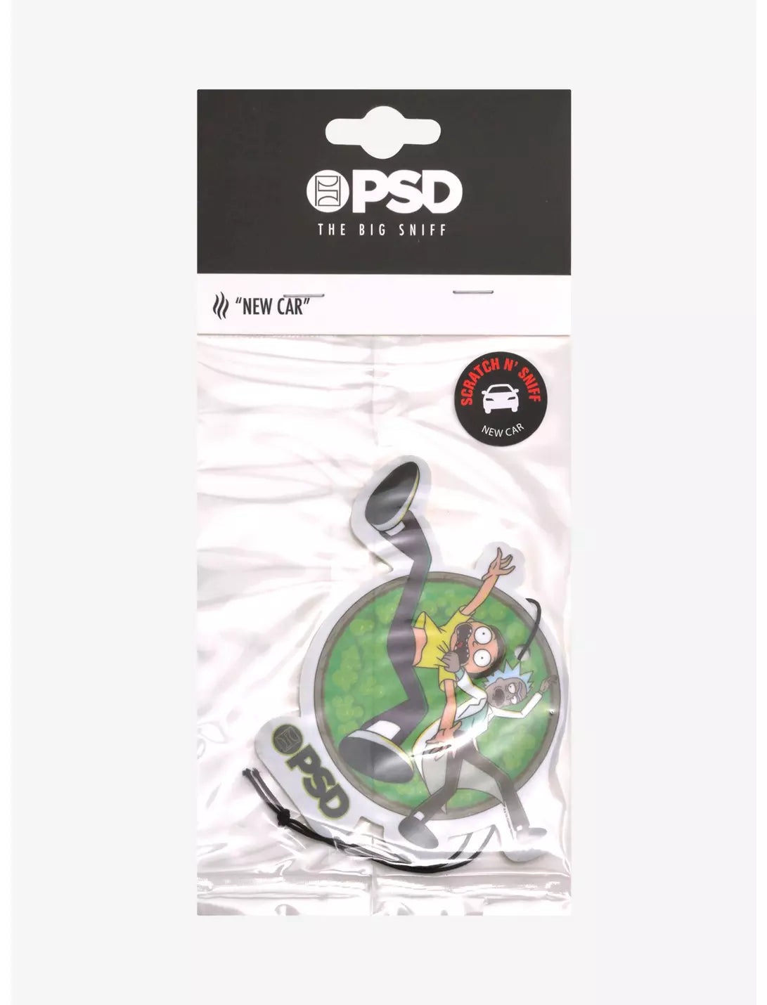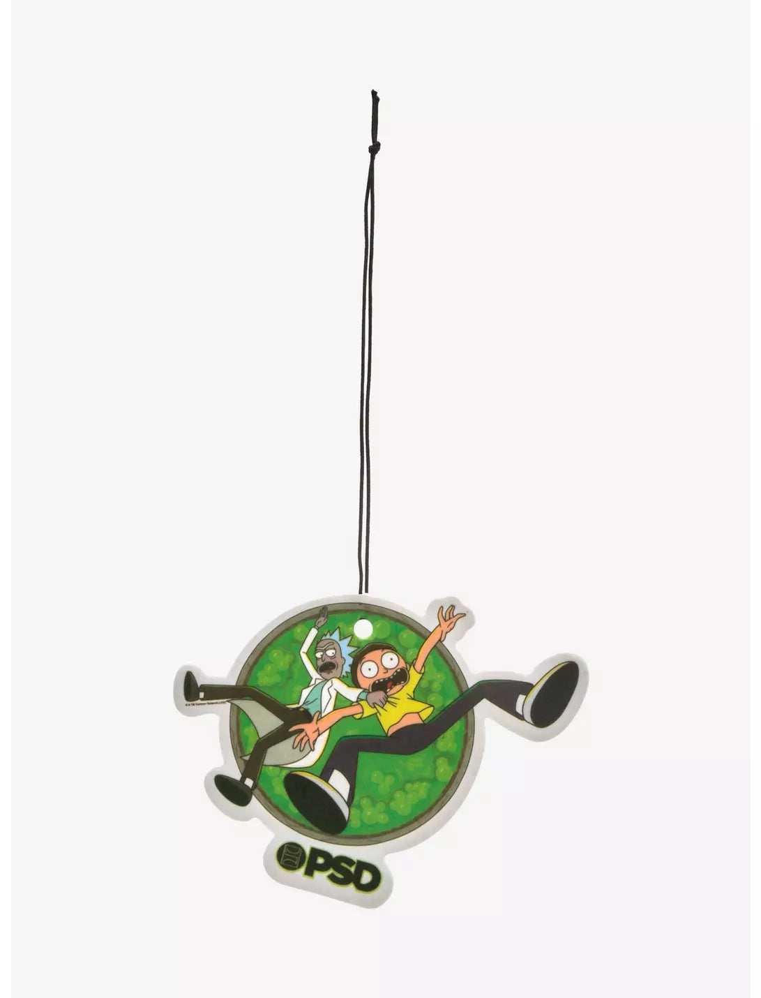 ¡Mantén tu nave espacial oliendo bien con este ambientador de Rick y Morty! Presentando al dúo cayendo a través de un portal. Viene con un aroma clásico a coche nuevo.