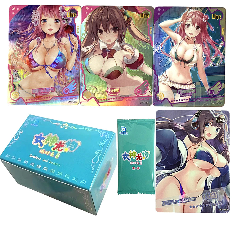 - Cantidad de tarjetas: 100 tarjetas por caja, tarjetas de arte de alta calidad de Goddess Story Feast. Una caja de 20 paquetes, 5 tarjetas por paquete. Cada uno de ellos contiene 5 tarjetas de rareza (por encima de SR)