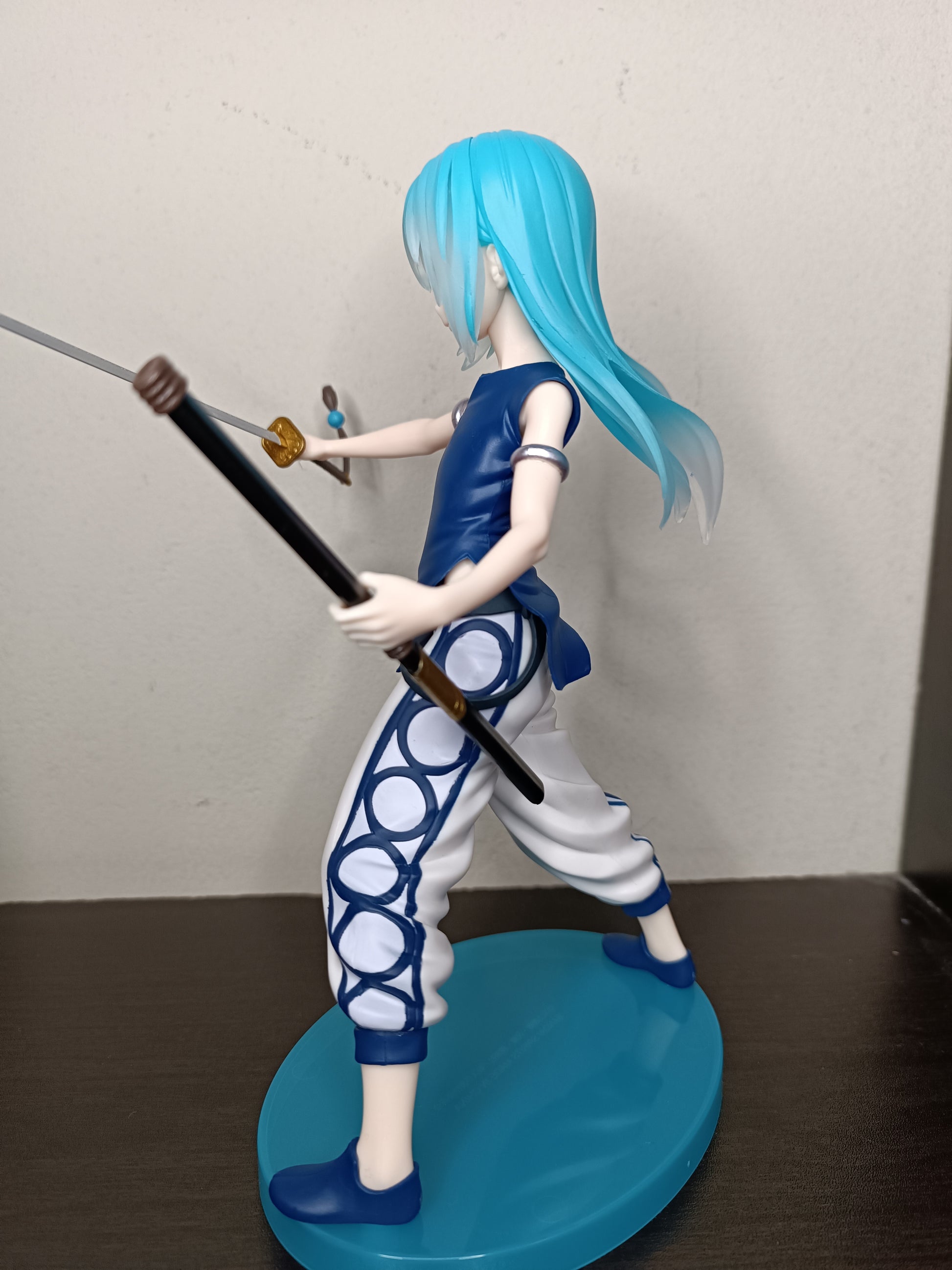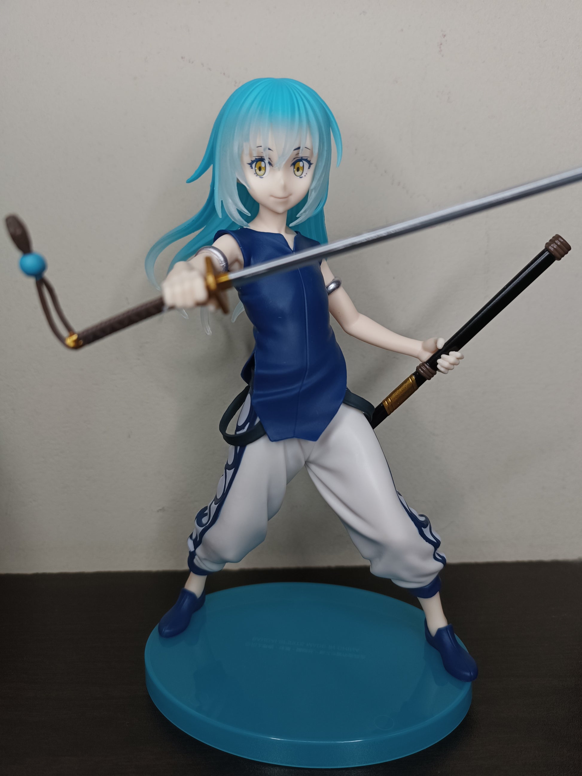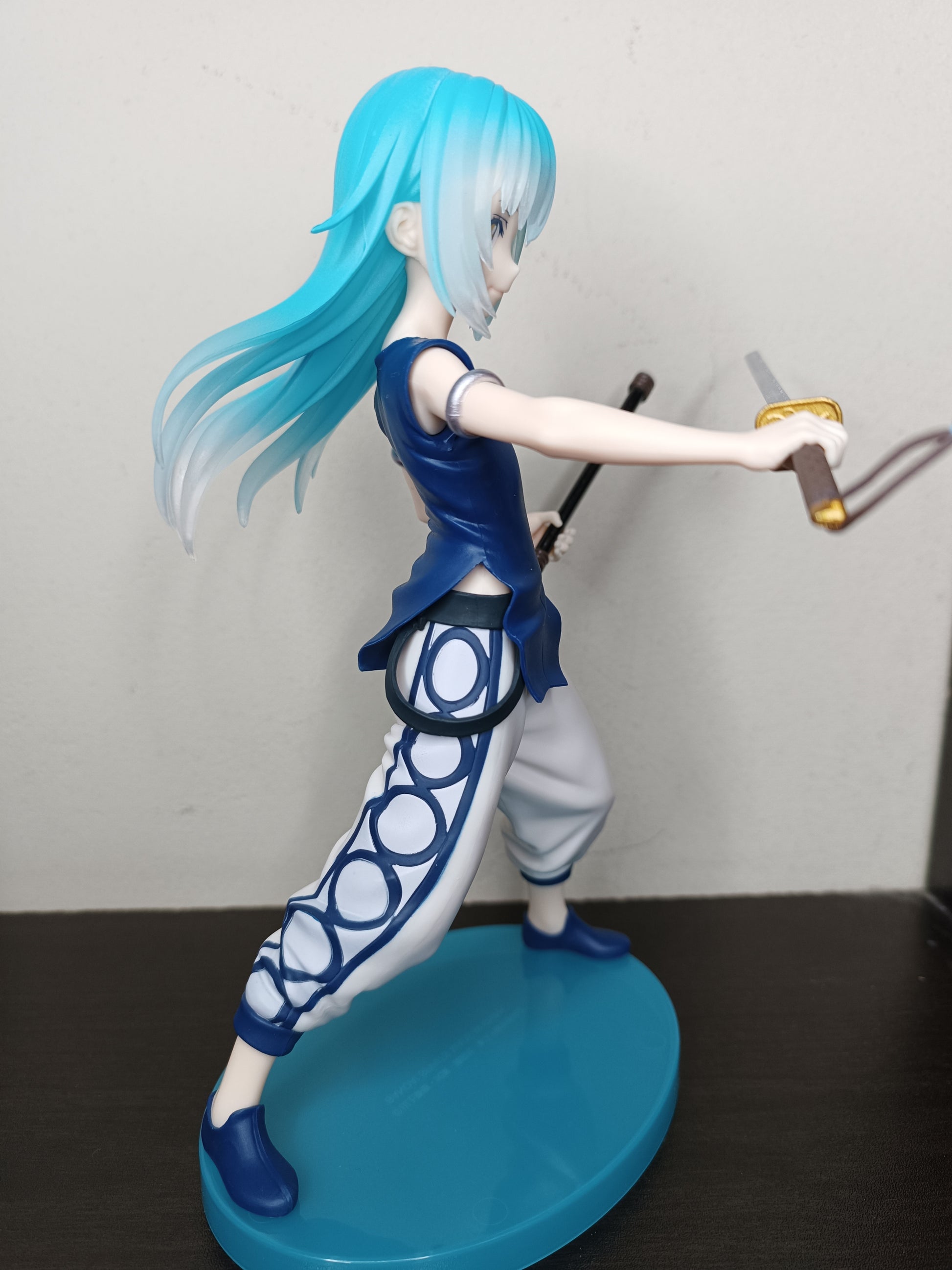 Directamente de That Time I Got Reincarnated as a Slime viene una figura de Espresto Rimuru con una espada que mide aproximadamente 9 pulgadas de alto.