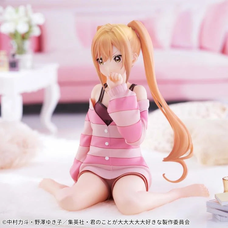 De la serie de anime The 100 Girlfriends Who Really, Really, Really, Really, REALLY Love You, llega esta figura de Karane Inda para relajarse. Representada sentada después de un largo día en la oficina, se la ve con un traje rosa.