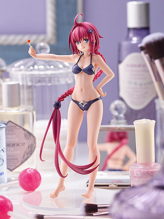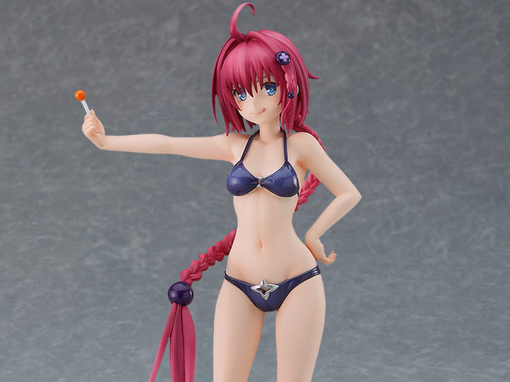 De la serie de anime To Love-Ru Darkness viene una figura Pop Up Parade de 7 pulgadas de Mea Kurosaki en su traje de baño, sosteniendo triunfalmente una piruleta.