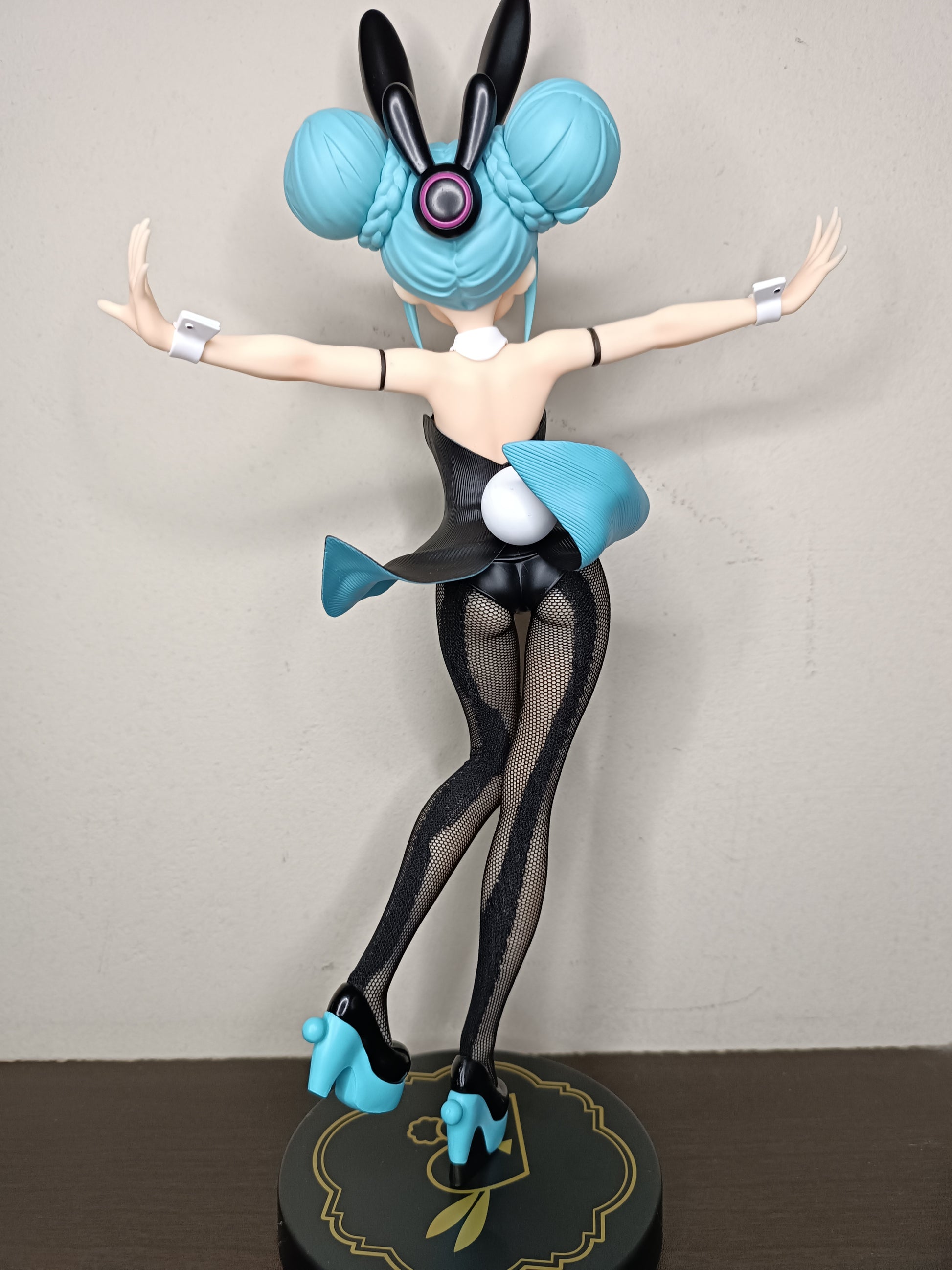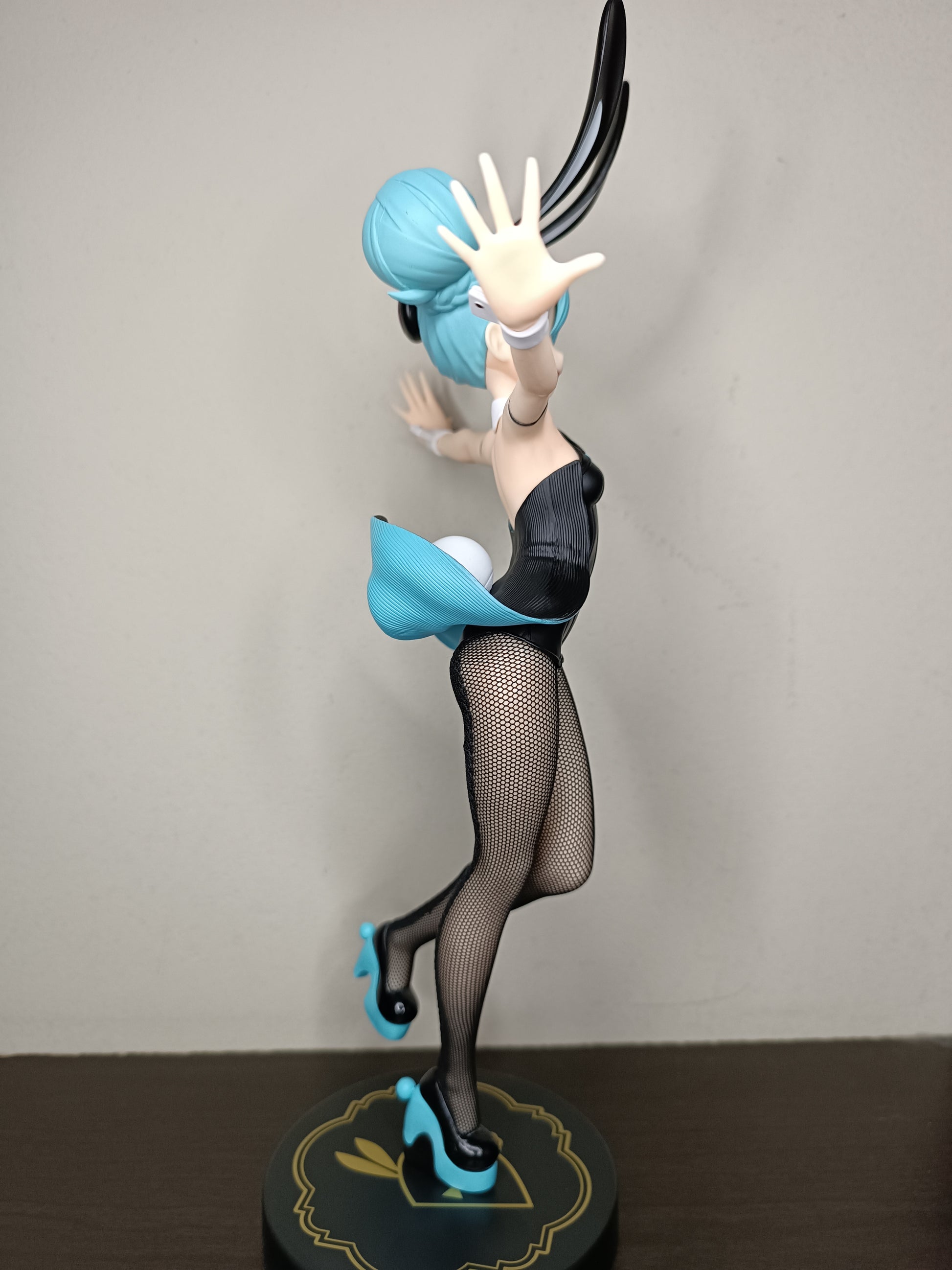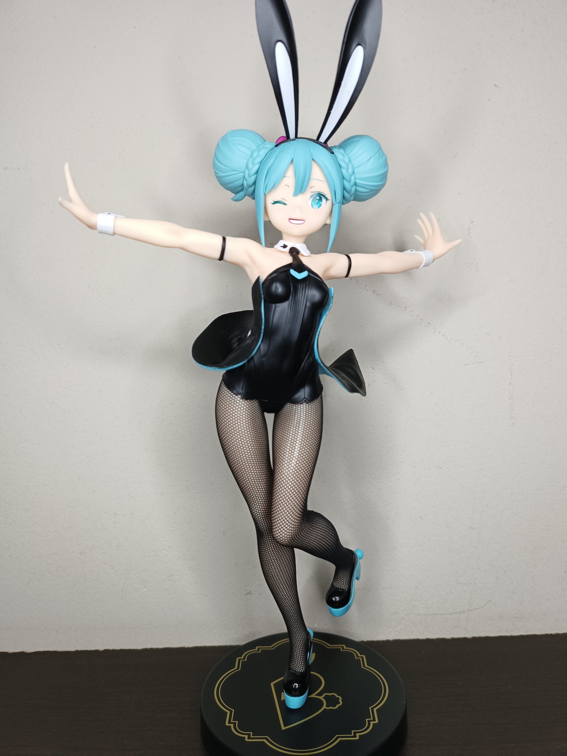 FuRyu te trae la línea de figuras BiCute Bunnies con Hatsune Miku en un traje negro mientras guiña un ojo. Ella mide casi 12 pulgadas de alto con su traje de conejita, súper linda y lista para exhibir.