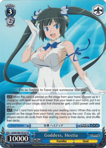 Conoce a la Familia Hestia de solo dos personas: ¡la diosa Hestia y el único miembro de su Familia, Bell! Como un joven aventurero con sed de volverse más fuerte, ¿qué aventuras le esperan a Bell mientras trata de ligar con chicas en el Dungeon? Únete a la expedición con ¿Está mal tratar de ligar con chicas en una mazmorra?, ¡ahora en Weiß Schwarz!